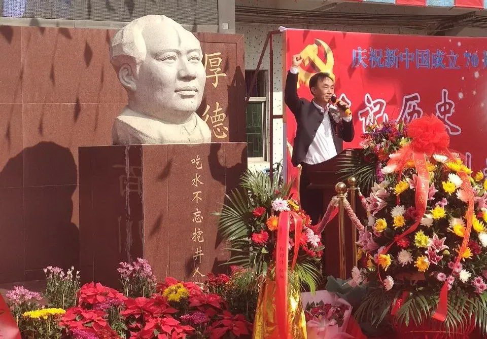同志們!在這沒有硝煙的戰場上,只是不同于戰火紛飛。今天我們以毛澤東《心之力》來紀念他老人家的126周年誕辰,激勵人民,明白『新中國』三個字的份量,他是一代先輩用自己的信仰和血肉鑄就的!中華人民共和國的國旗,黨旗和軍旗是先烈們的鮮血染紅的,革命者前仆后繼,無所畏懼,恩情比大海還深!沒有共產黨就沒有新中國!因此,全國各族人民一定要緊密地團結在以習主席為首的黨中央周圍,高舉毛澤東思想偉大旗幟,沿著以毛澤東同志為代表的老一輩無產階級革命家開創的道路在新時代不斷推向前進,以告慰向新中國立下汗馬功勞的革命先輩和人民英雄,并向他們致敬!